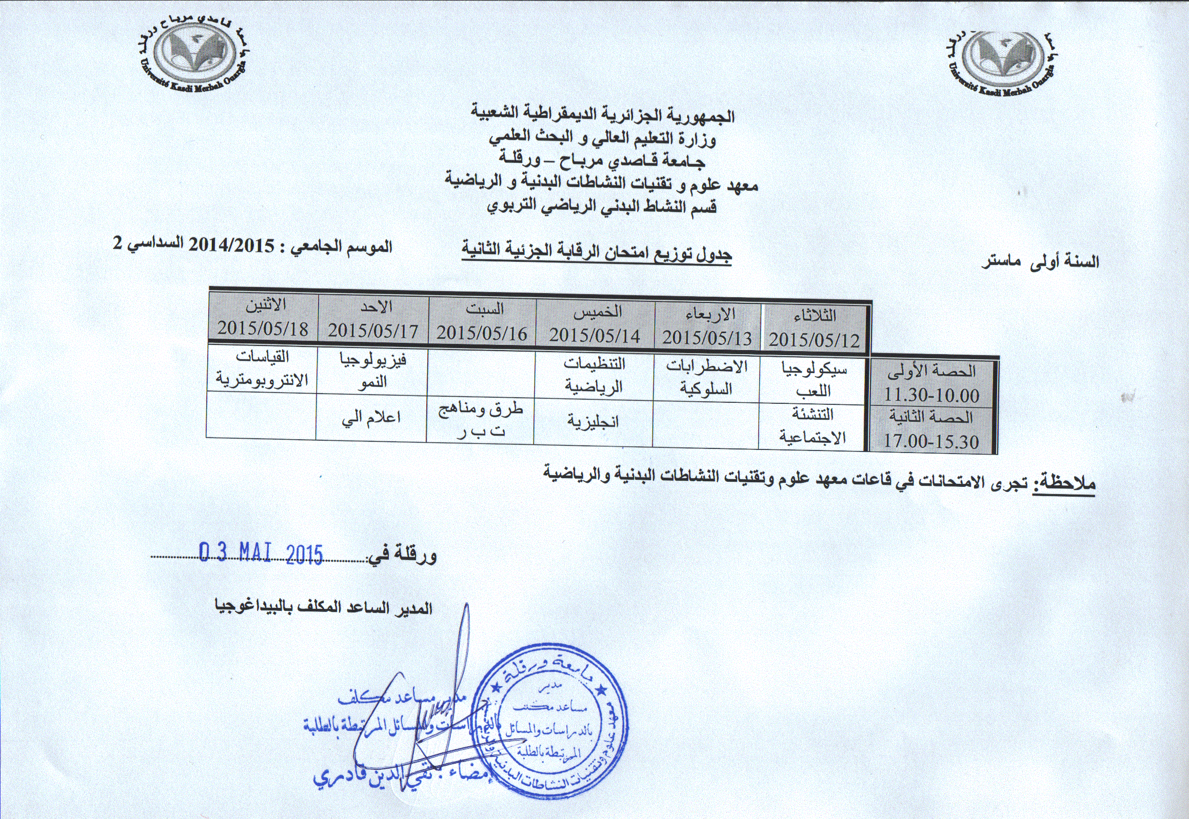جداول امتحانات السداسي الثاني