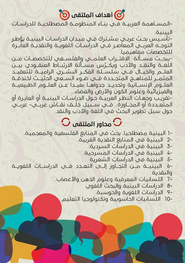 - تقريب وجهات النظر العربية حول الدراسات البينية أو العابرة أو المتعددة أو المجاوزة.. في سبيل خلق نقاش عربي- عربي حول سبل تطوير البحث في اللغة والأدب والنقد.