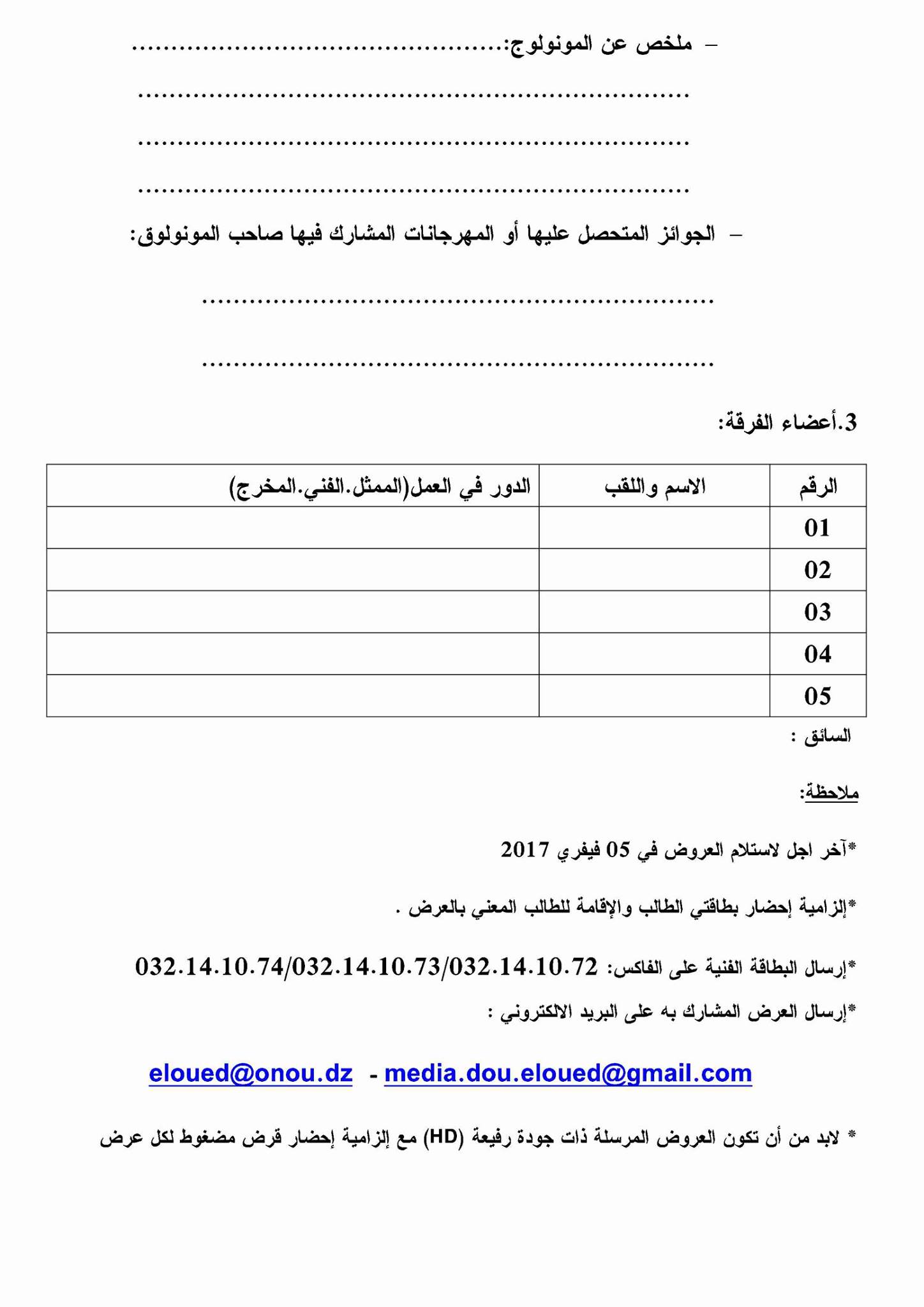 المهرجان الوطني الثالث للمونولوج بمديرية الخدمات الجامعية بالوادي للاعلان والاعلام الواسع للطلبة