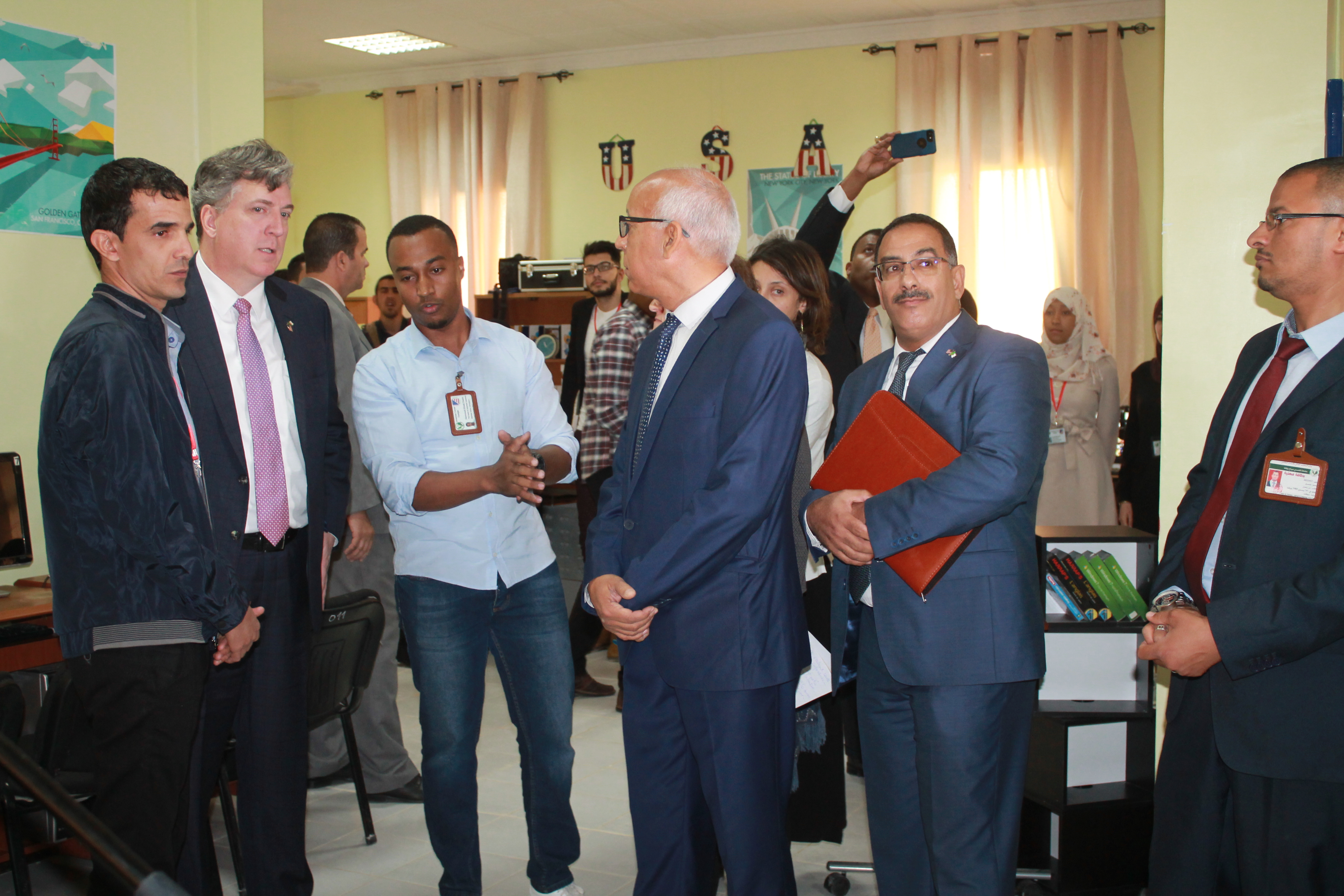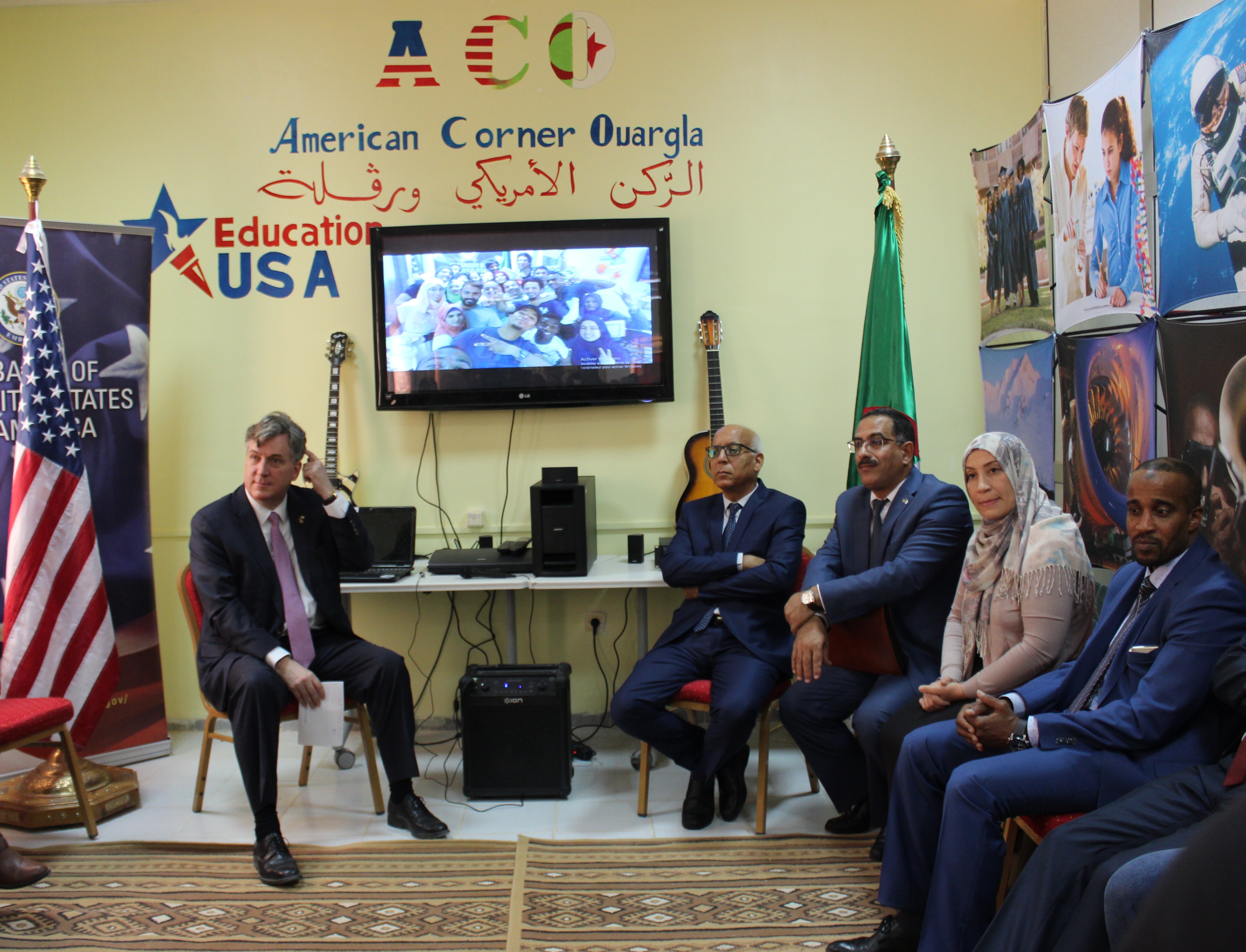 وتهدف الزيارة للوقوف على مدى تجسيد الإتفاقيات والبرامج المبرمة بين الجزائر و الولايات المتحدة الأمريكية في مجال البحث العلمي، حيث تناقش السيد مدير الجامعة والسفير الأمريكي تطوير التعاون في مجال التعليم العالي في جامعة ورقلة خاصة والجامعات الجزائرية ككل،وكان لضيف الجامعة والوفد المرافق له زيارة للركن الامريكي بالقطب الجامعي (02) والتواصل المباشر مع المشرفين والطلبة ومعرفة سيرورة الركن وبرامجه .