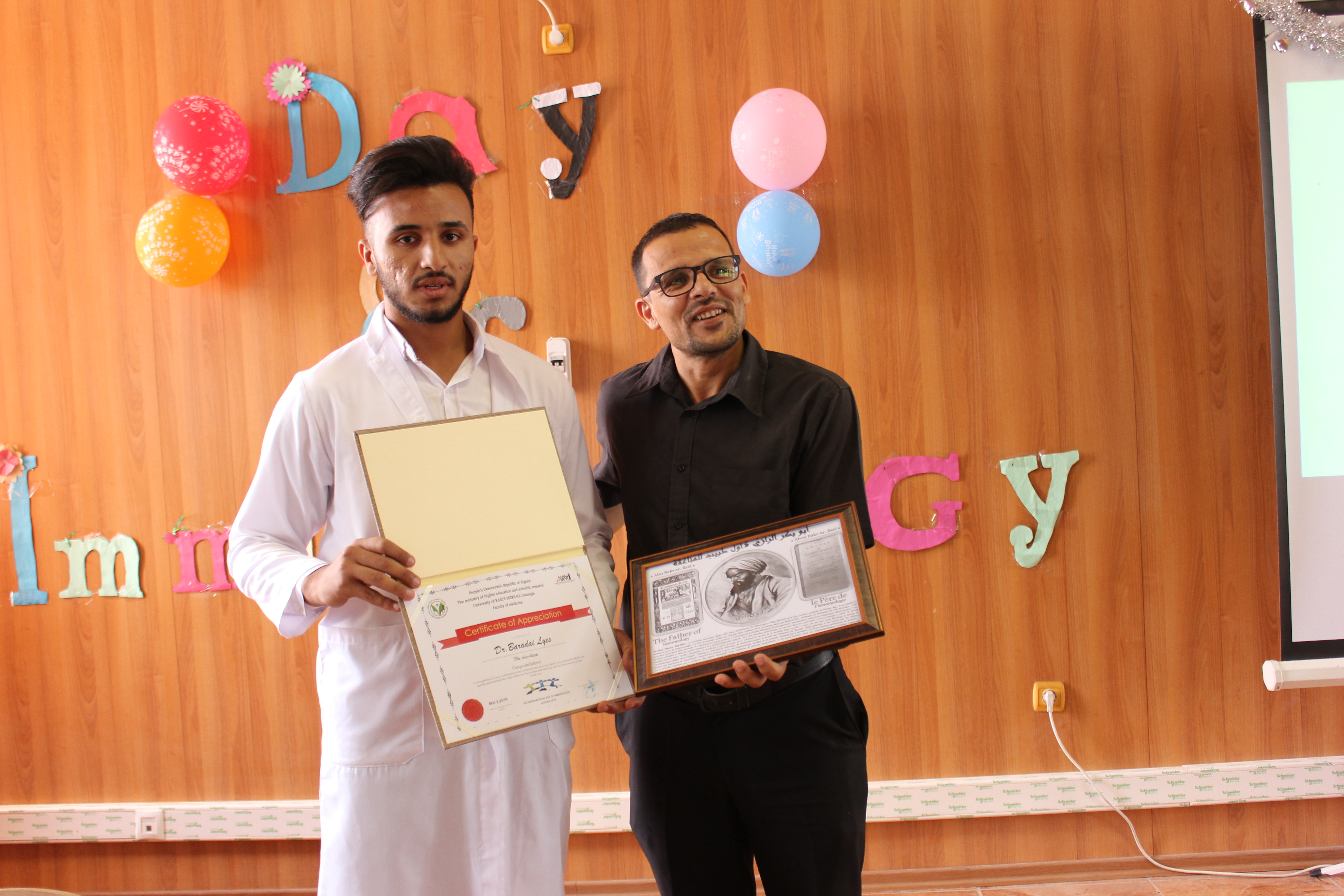 إحياء لليوم العالمي للمناعة المصادف لـ 29 أفريل، نظم طلبة السنة الثالثة طــب بجامعة قاصدي مرباح ورقلة تظاهرة علمية بالمناسبة يوم 02 ماي 2019 بمكتبة كلية الطب بالقطب الجامعي 01، بحضور دكاترة إستشفايين جامعيين مختصين في علم المناعة على رأسهم الدكتور خير الدين قربوعة والطاقم الإداري للكلية وطلبتها بختلف مستوياتهم.