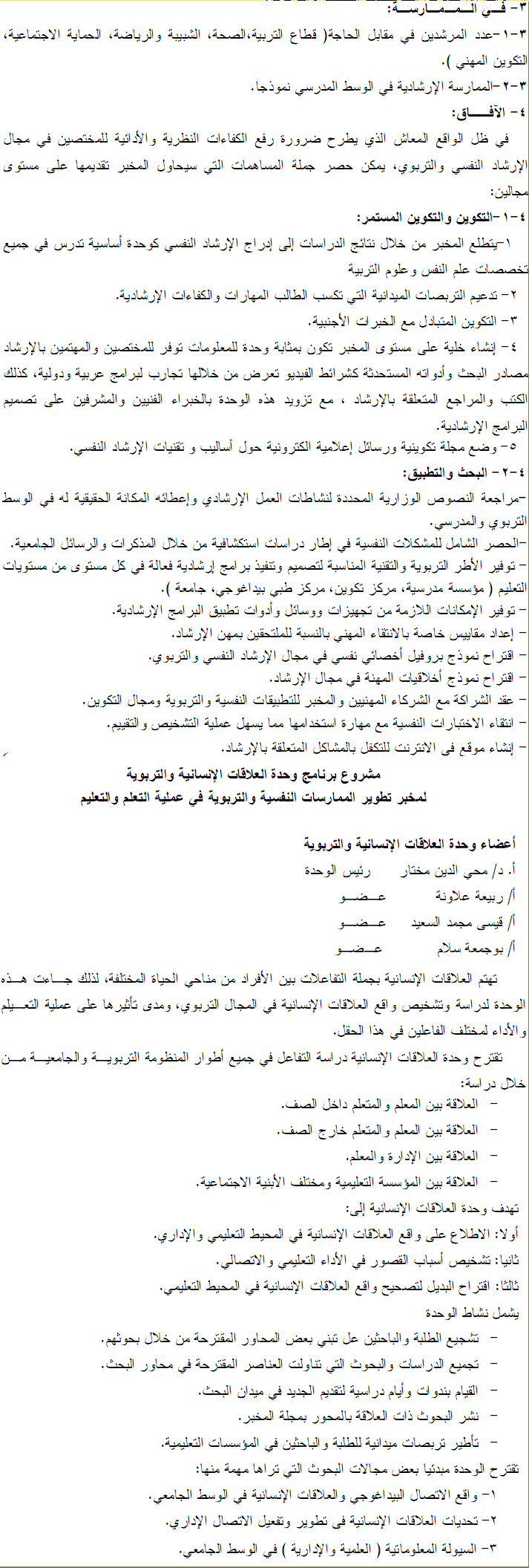 مخبر تطوير الممارسات النفسية التربوية في عملية التعلم / التعليم الصفي