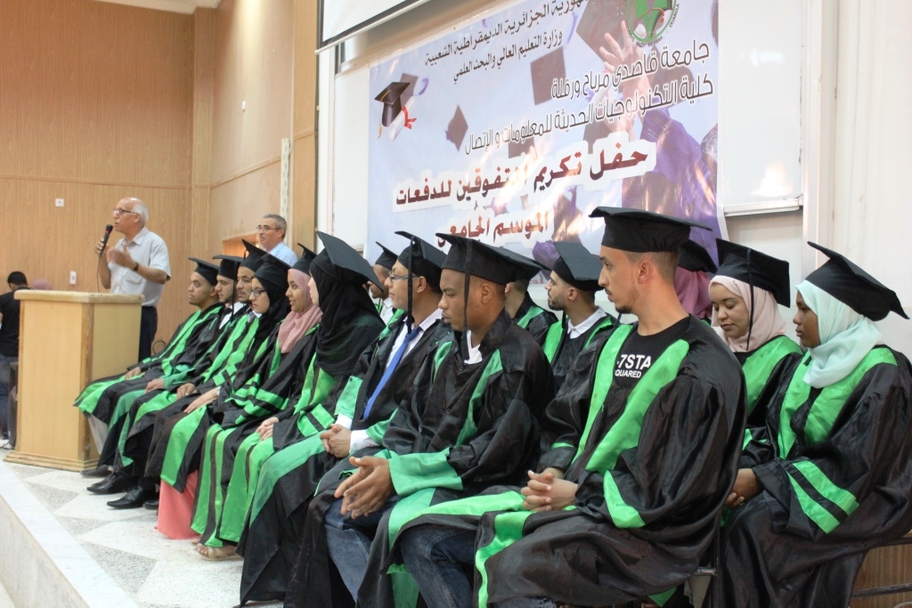 لقد دأبت جامعة قاصدي مرباح ورقلة على تكريس عادات حميدة تتمثل في مراسيم إختتام المواسم الجامعية وتكريم طلبتها النجباء، وهاهي اليوم تحتفل باختتام الموسم الجامعي 2018/2019 وتقاسم الطلبة وأهاليهم فرحة التخرج وإسدال الستار على سنة جامعية مميزة وحافلة بالنجاحات بامتياز، وهذا يوم 27 جوان 2019 بقاعة المحاضرات بمديرية الجامعة بحضور السيد وزير التكوين والتعليم المهني الدكتور دادة موسى بلخير والسلطات المدنية على رأسهم السيد والي الولاية السيد عبد القادر جلاوي والسادة أعضاء البرلمان بغرفتيه والسادة المنتخبون من المجالس المحلية والشركاء الإجتماعيين والإقتصاديين والمدراء التنفديين ومدراء المؤسسات على مستوى الولاية والأسرة الجامعية ومشايخ المنطقة وضيوف عائلات الطلبة المتفوقين.