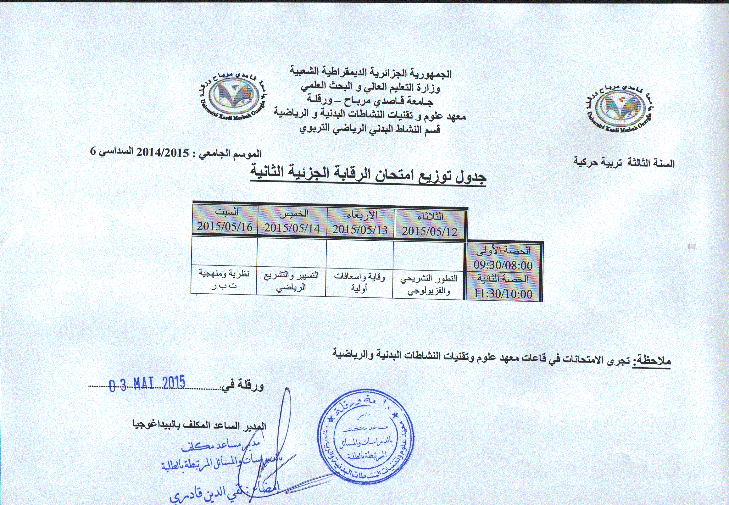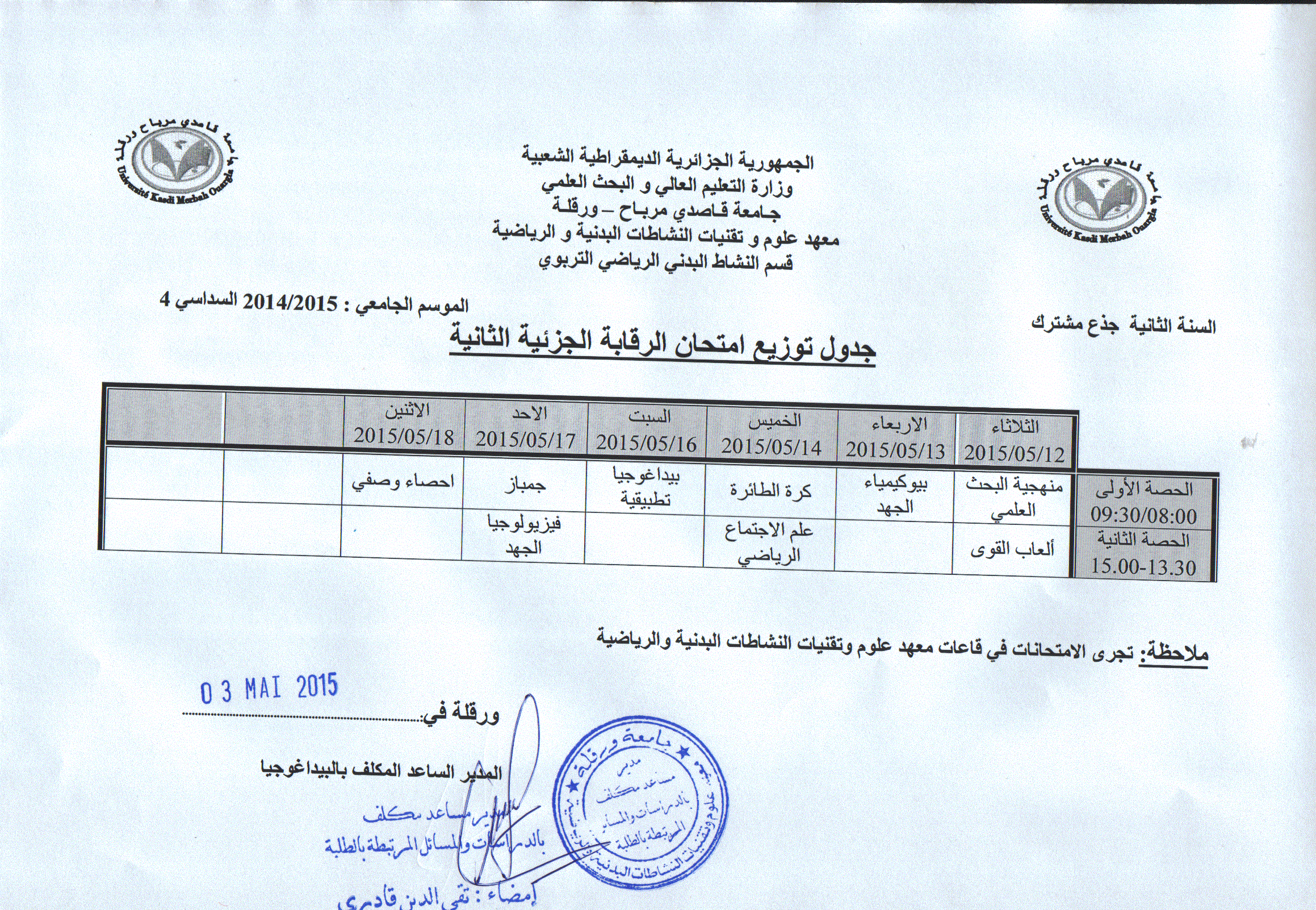 جداول امتحانات السداسي الثاني