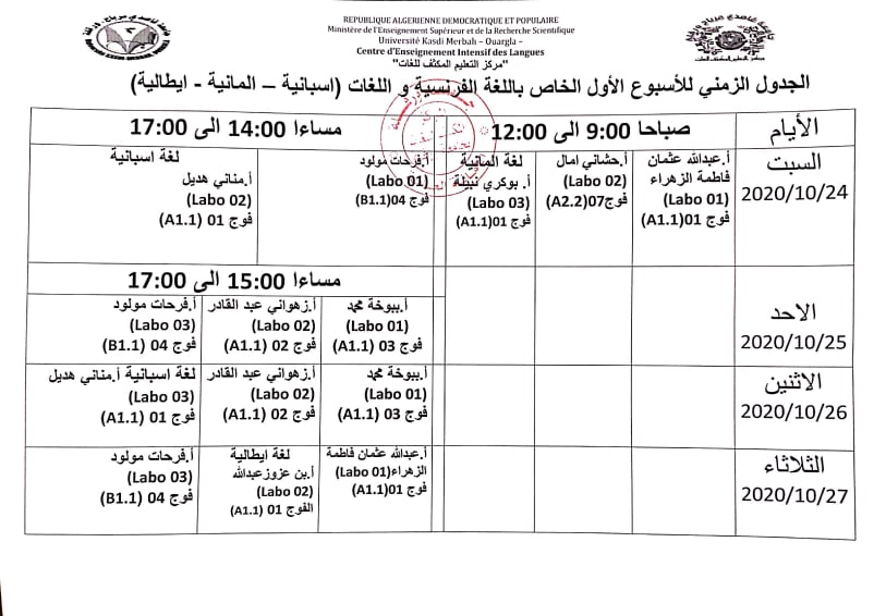 جدول الزمني لكل لغة لاستئناف الدروس 2020