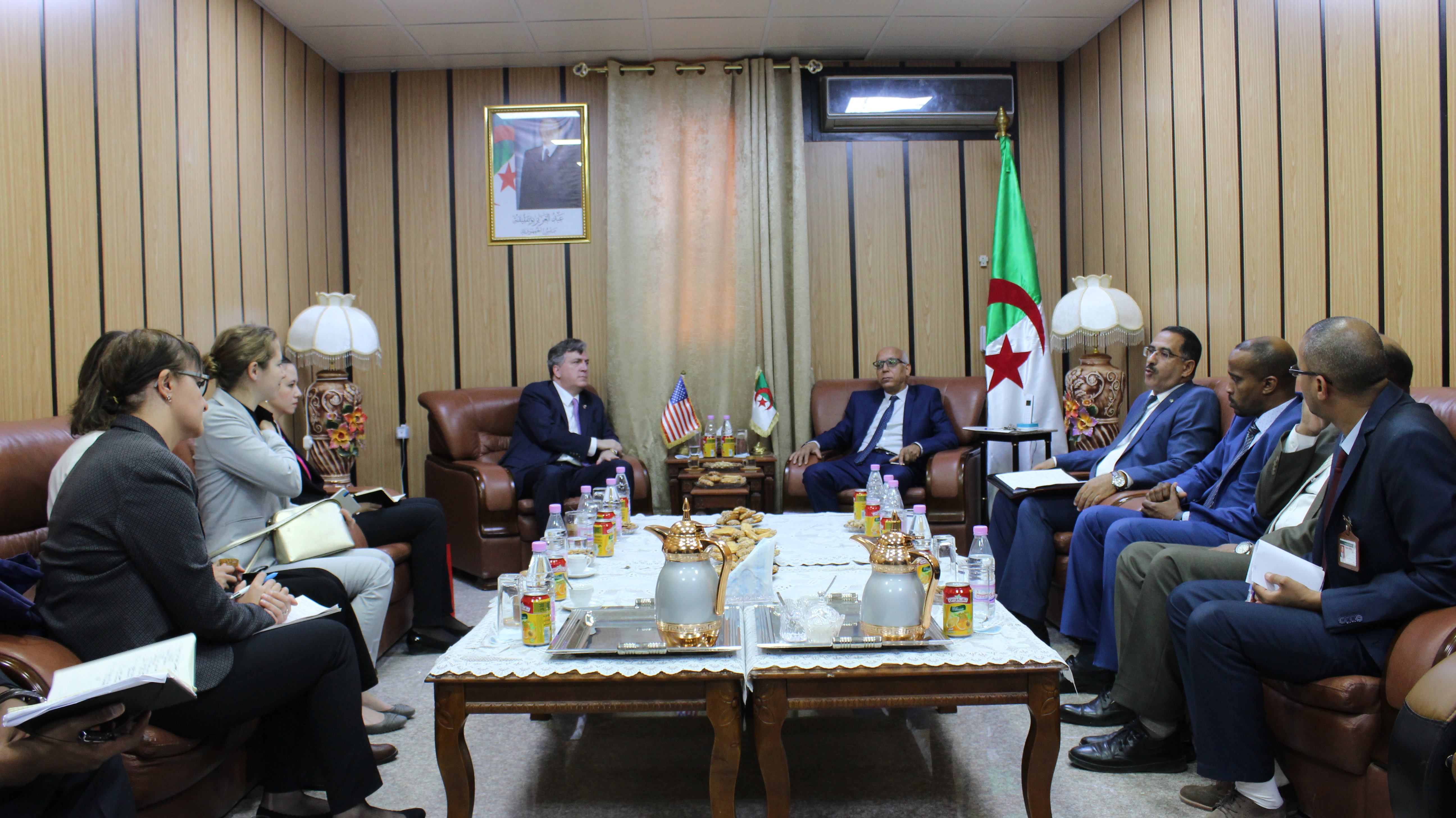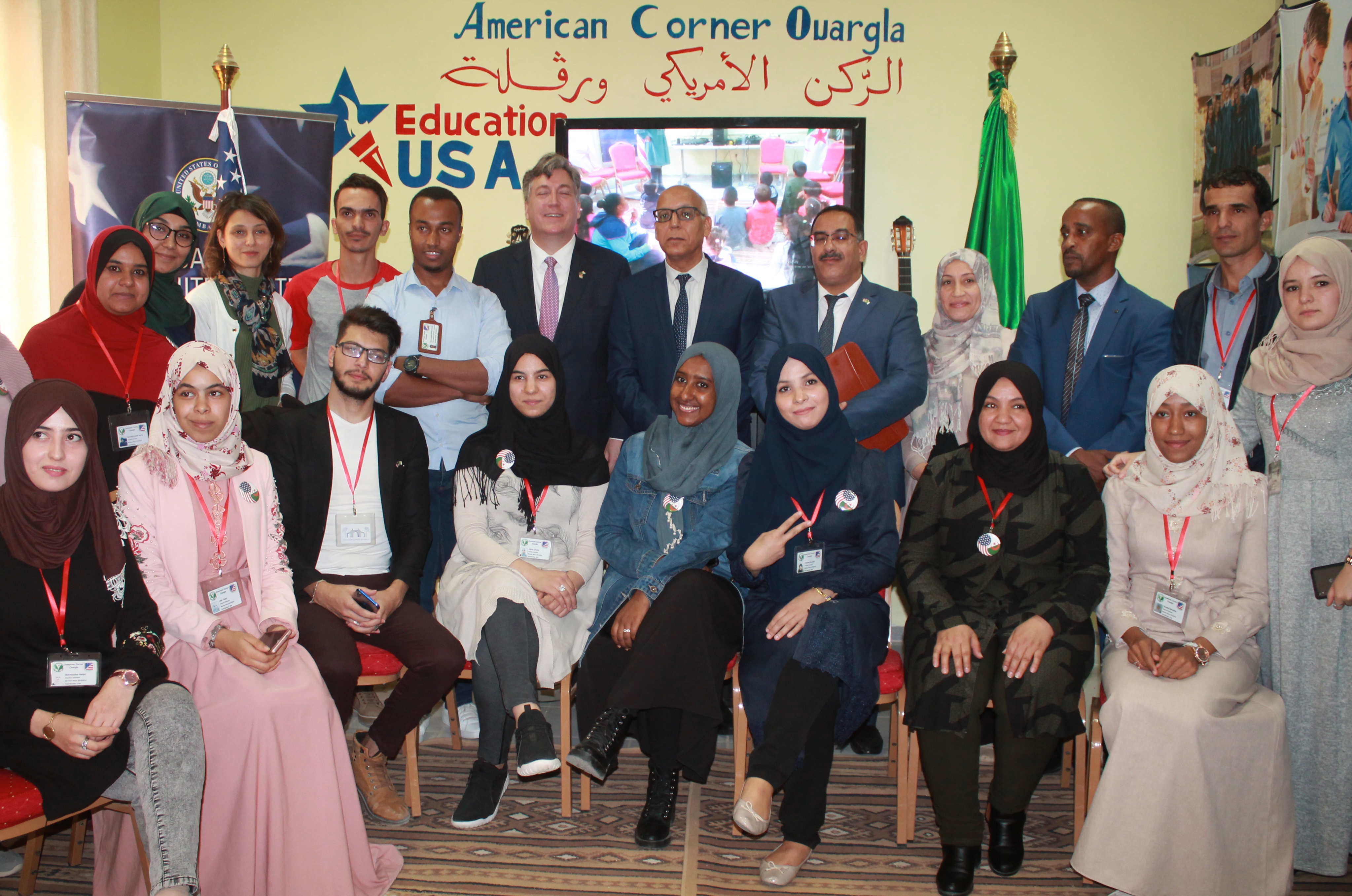وتهدف الزيارة للوقوف على مدى تجسيد الإتفاقيات والبرامج المبرمة بين الجزائر و الولايات المتحدة الأمريكية في مجال البحث العلمي، حيث تناقش السيد مدير الجامعة والسفير الأمريكي تطوير التعاون في مجال التعليم العالي في جامعة ورقلة خاصة والجامعات الجزائرية ككل،وكان لضيف الجامعة والوفد المرافق له زيارة للركن الامريكي بالقطب الجامعي (02) والتواصل المباشر مع المشرفين والطلبة ومعرفة سيرورة الركن وبرامجه .