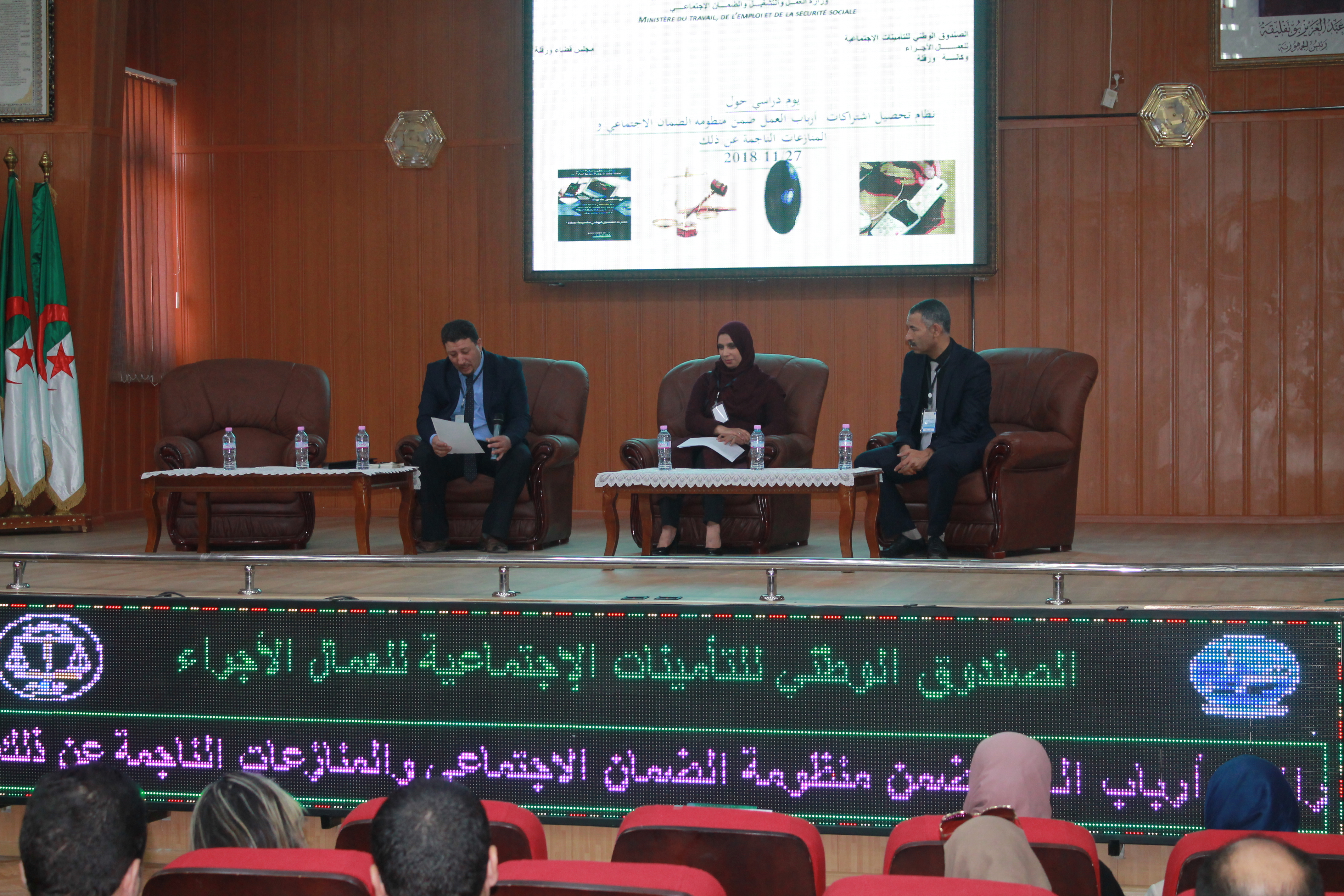 نظم الصندوق الوطني للتأمينات الإجتماعية للعمال الأجراء –وكالة ورقلة- بالتنسيق مع مجلس قضاة ورقلة يوما دراسيا مشتركا حول: "نظام تحصيل إشتراكات أرباب العمل ضمن منظومة الضمان الإجتماعي والمنازعات الناجمة عن ذلك"، يوم 27 نوفمبر 2018 بقاعة المؤتمرات بجامعة قاصدي مرباح ورقلة، وهذا بحضور قضاة ومحامين ومفتشين ومسؤولي في عدة قطاعات لها علاقة بنظم التحصيل.