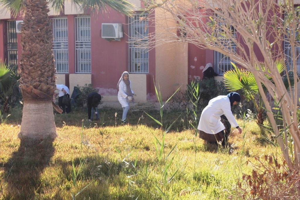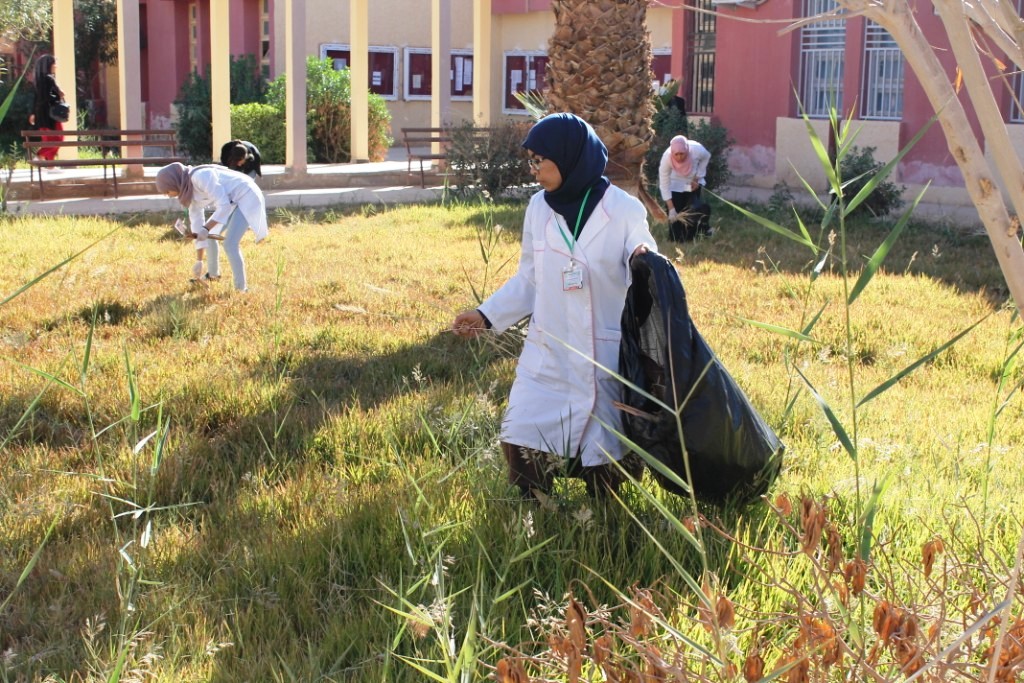 نادي عبد القادر بلواد لكلية علوم الطبيعة والحياة يقوم بحملة نظافة على مستوى الكلية مع جميع الطلبة والأساتدة والعمال