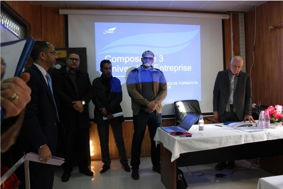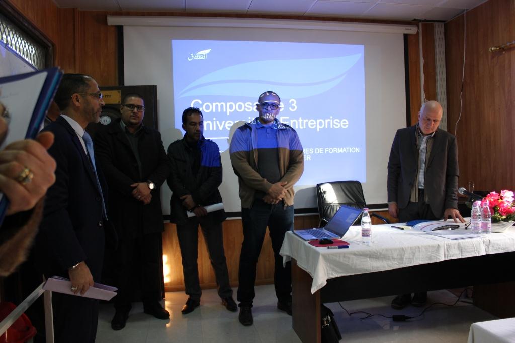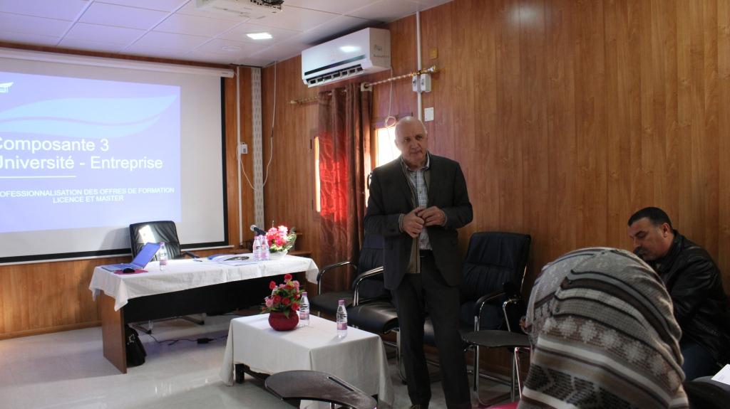 إختتمت صبيحة اليوم الخميس 31 جانفي 2019 جلسات العمل والتشاور والتنسيق بين شركاء برنامج آفاق AFEQ  على مستوى معهد التكنولوجيا بجامعة قاصدي مرباح والتي دامت أسبوعا كاملا من العمل عبر مختلف كليات ومعاهد الجامعة، جاء هذا الإختتام لهذه الجلسات من خلال جلسة عمل لورشة التكوين في برنامج المقاربة بالكفاءات ضمت كل الشركاء في هذا البرنامج حيث ترأس الجلسة السيد SOLOVIEV Pierre  منسق الحوار ودارت المناقشات حول برنامج آفاق AFEQ  والمراحل التي وصل اليها من خلال تطبيق برامج التكوين المقترحة من طرف الجامعة والتي كانت ثمرة العديد من اللقاءات والجلسات التنسيقية للشركاء الإجتماعيين والإقتصاديين من جهة وأساتذة ومؤطري هذا البرنامج بجامعة قاصدي مرباح وممثلي الإتحاد الأوروبي من جهة أخرى.